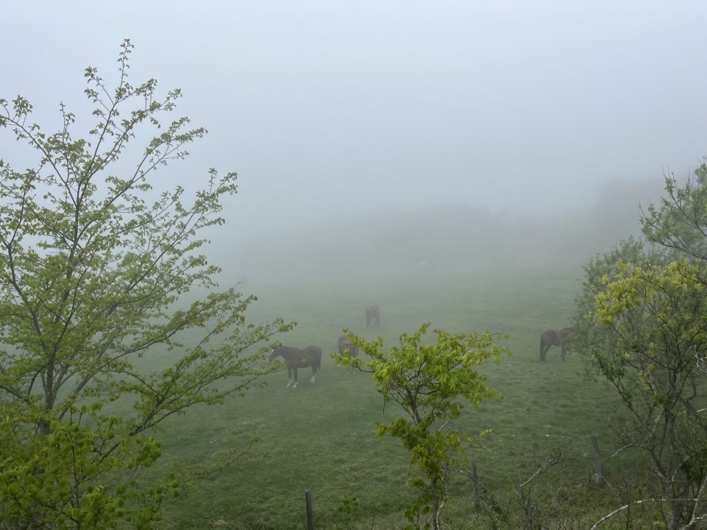 今年もまた 2023.6.9 今年も高原に上がったばかりの馬たちに会えた。 5月下旬の高原は、霧が深く、新緑が瑞々しく、やっぱり静かだった。 静かだけど、そこには馬たちの生命の音が響き渡る。 3年前の今頃の高原も霧が深かった。 時は流れ、命は巡り、今またこの季節。 馬たちが高原で過ごす秋までの時間。 私はどんなふうに時間を過ごそうか。