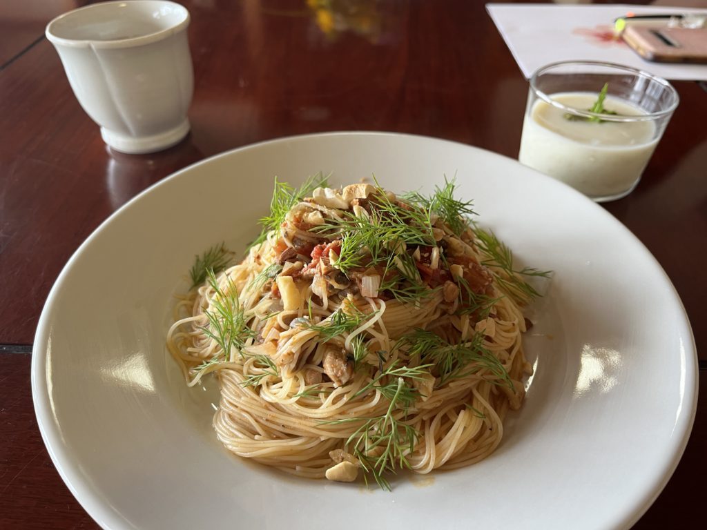 Ladyest 6.11 2025.6.12 主宰Tomomiさんからのお題「内側から湧く」 ナッツとフレッシュなハーブを使った冷製パスタ。 生命の始まりである種子と瑞々しいハーブは、身体の中から生きるエネルギーが湧くかなぁと想像してみた。